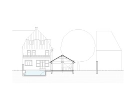 Die Disposition von Zufahrt und Doppelgarage wirken dem Gedanken einer grosszügigen Gartenanlage entgegen, sodass sich die neue Eigentümerschaft entschloss den Garten neu zu gestalten und ihren Traum von einem Gartenpool zu verwirklichen. Für die künftige Nutzung der Garage als gedecktes Gartenhaus wurde auf die weitere Nutzung als Autoeinstellplatz verzichtet.