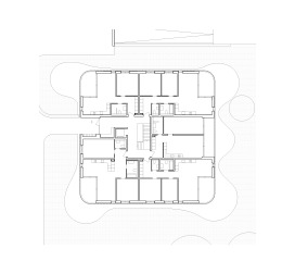 Mit Verlegung der bestehenden Tiefgarageneinfahrt an die Lilienstrasse wird die Durchwegung der Parzelle aufgewertet und neu konzipiert. Der kompakte, an der Parzellenecke platzierte Neubau fungiert als „Mittler“ zwischen dem durchgrünten, halböffentlichen Hofbereich und dem Quartier. Der Zugang zum Neubau erfolgt vom Lettenweg über den neu gestalteten Zugangsbereich. Ein rückversetzter Hauseingang führt zum zentralen Treppenhaus, mit dem alle 20 Wohnungen auf 3 Regelgeschossen und dem Attikageschoss erschlossen werden. Jede Wohnung hat einen offenen Wohn-, Ess- und Kochbereich, der sich um eine grosszügige Loggia bzw. Terrasse orientiert.